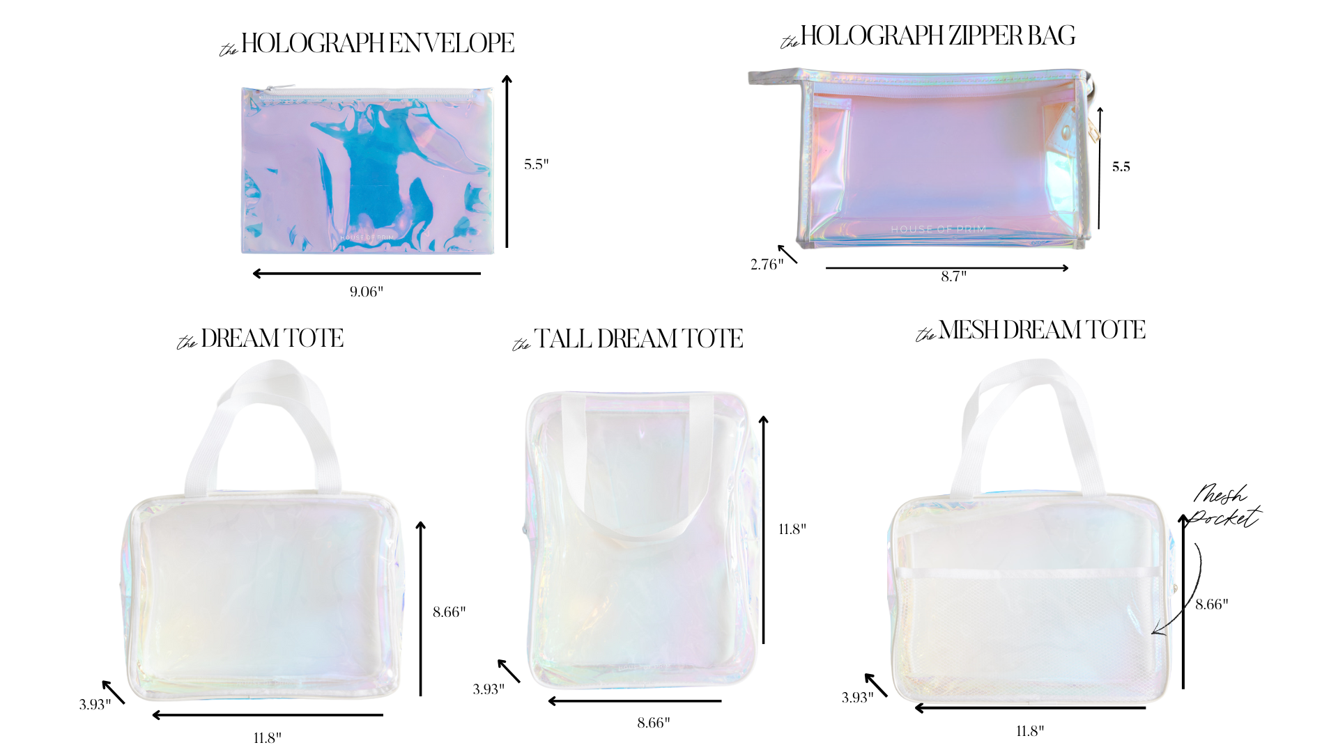 Holograph Zipper Bag: 8.7"l x 5.5"h x 2.76"w