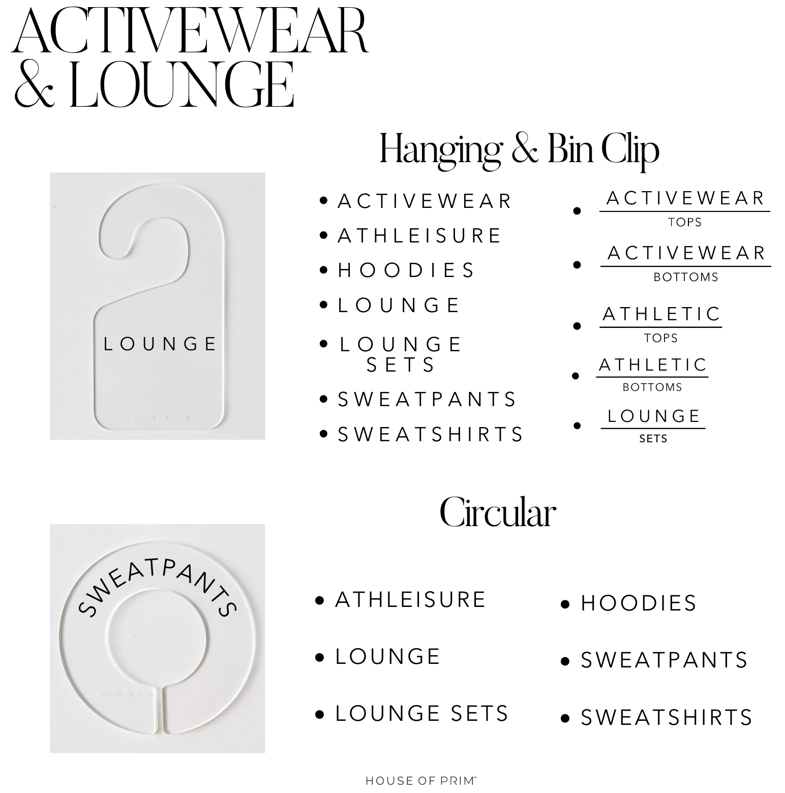Created to organize activewear and lounge pieces by category and use—making everyday, grab-and-go dressing simpler and more streamlined.